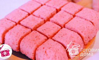 Розрівнюю поверхню і прибираю в холодильник буквально на 1-2 години. За цей час пюре добре схопитися, загусне і вийде просто неймовірно ніжні та смачні цукерки маршмеллоу з ягід. -